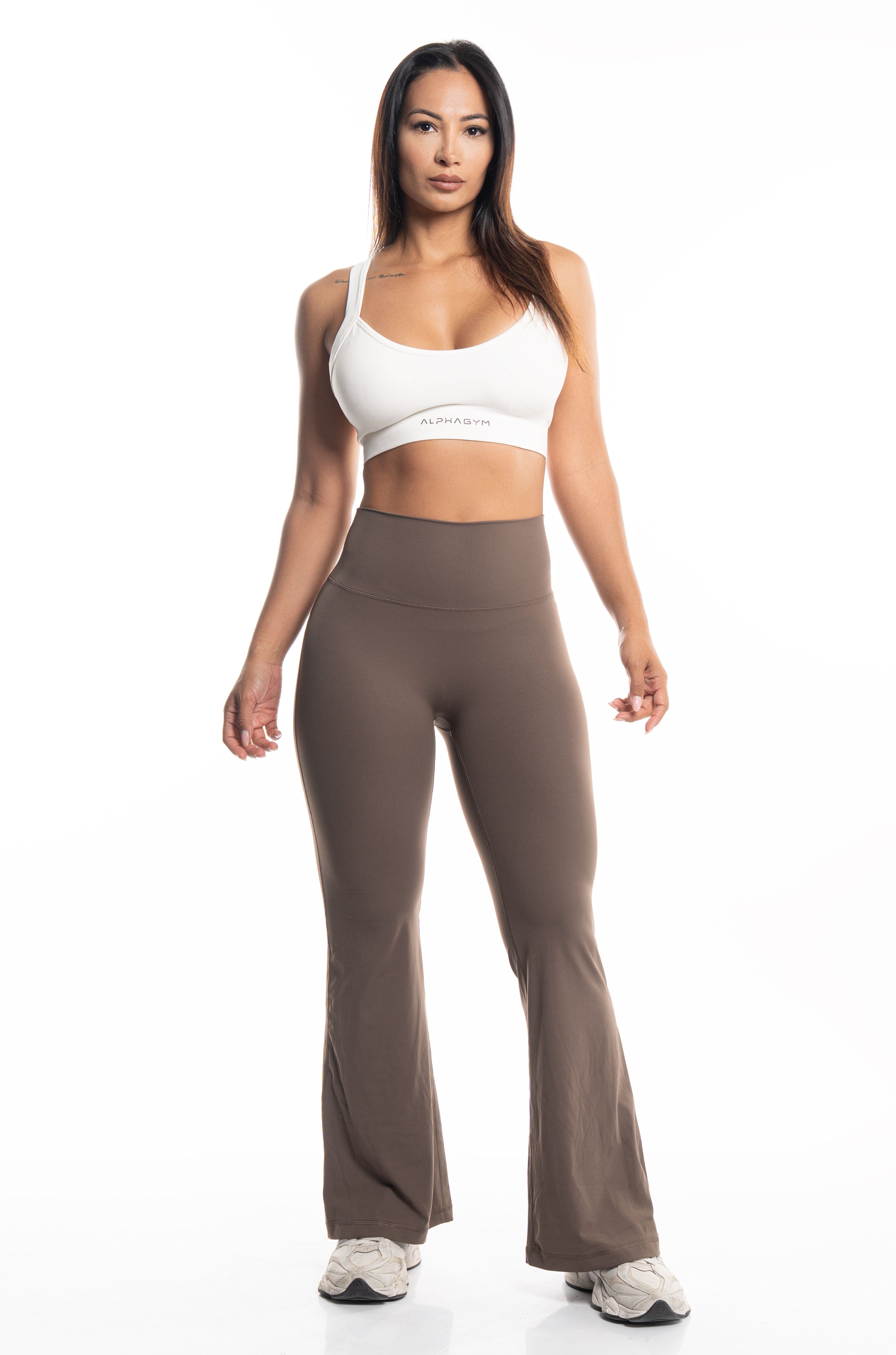 ALPHA GYM Flared Leggings – Soft Strength in Truffle.
