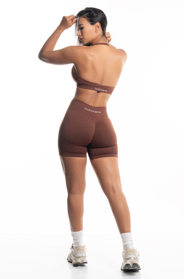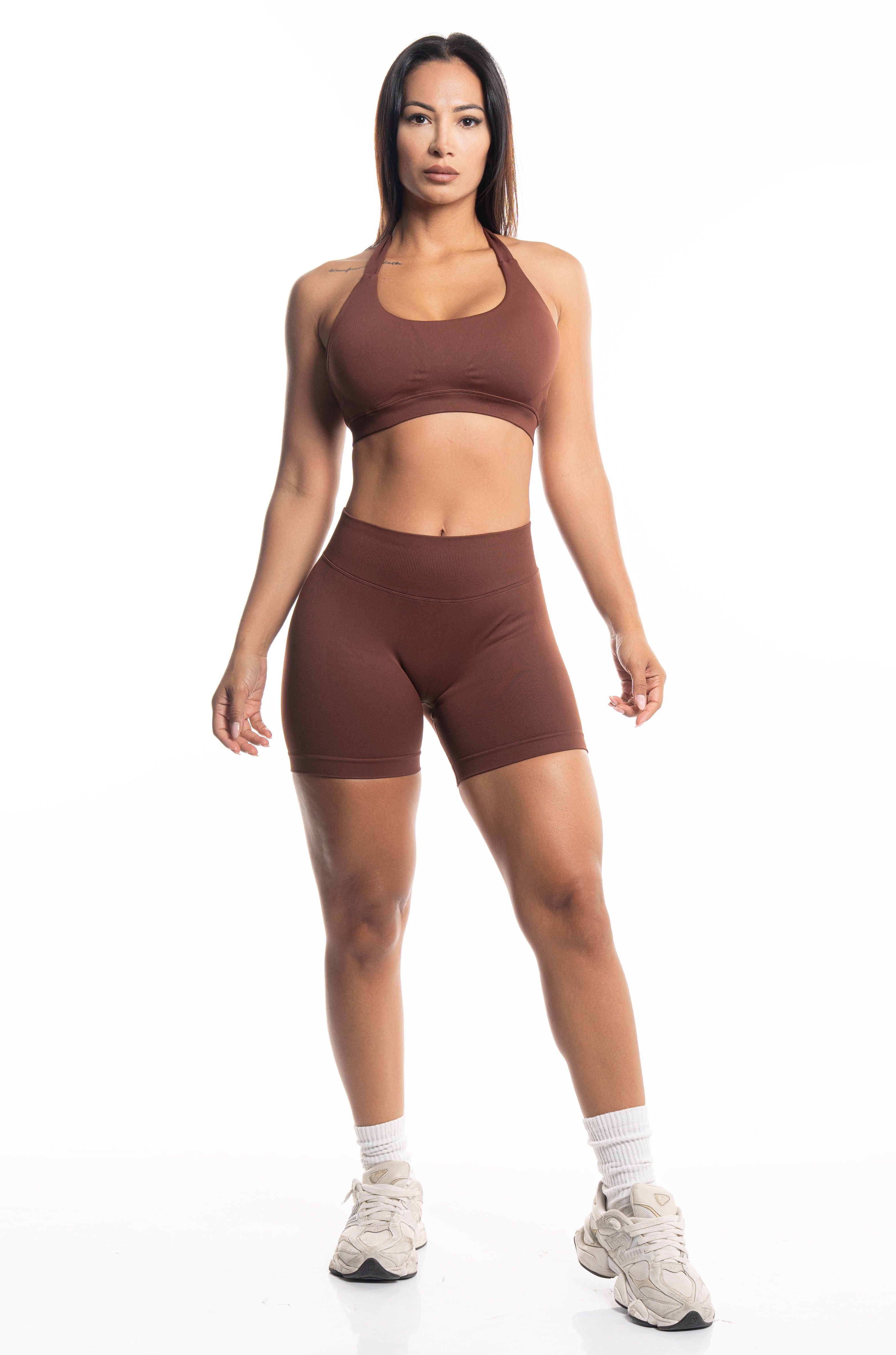 Warm, edel und stark – die ILAYA Shorts in Mahogany bringen Ausdruck in dein Training.