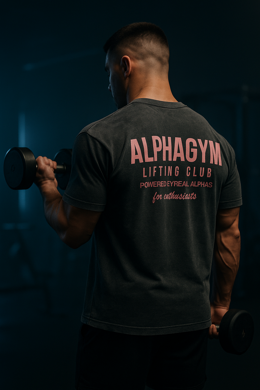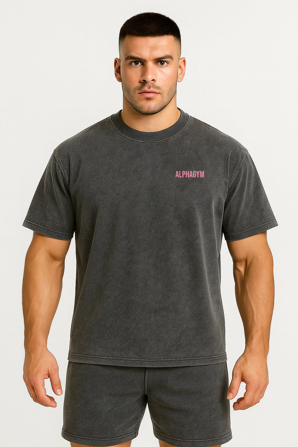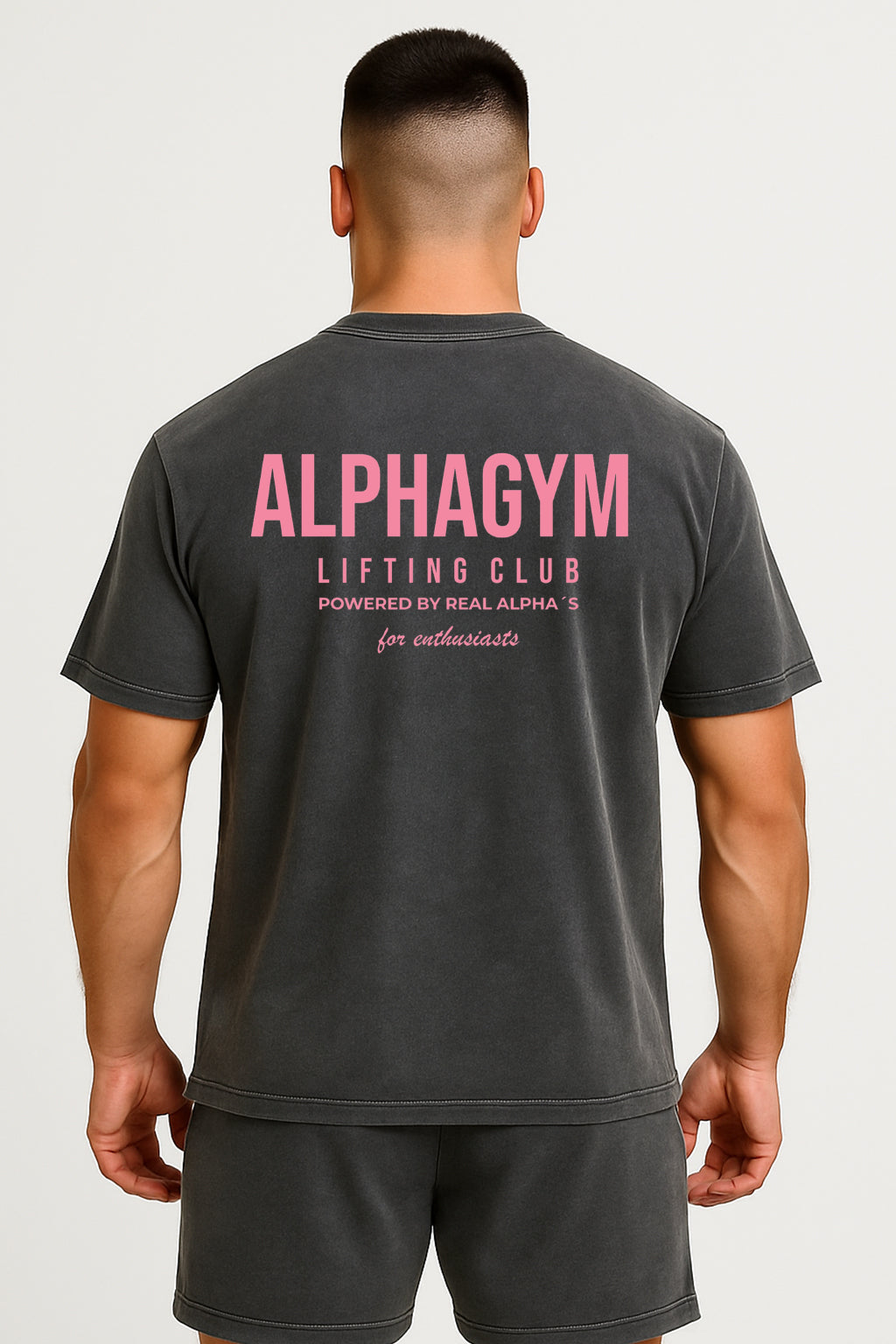 ALPHA GYM "LIFTING CLUB" OVERSIZED T-SHIRT GREY WASHED/ PINK