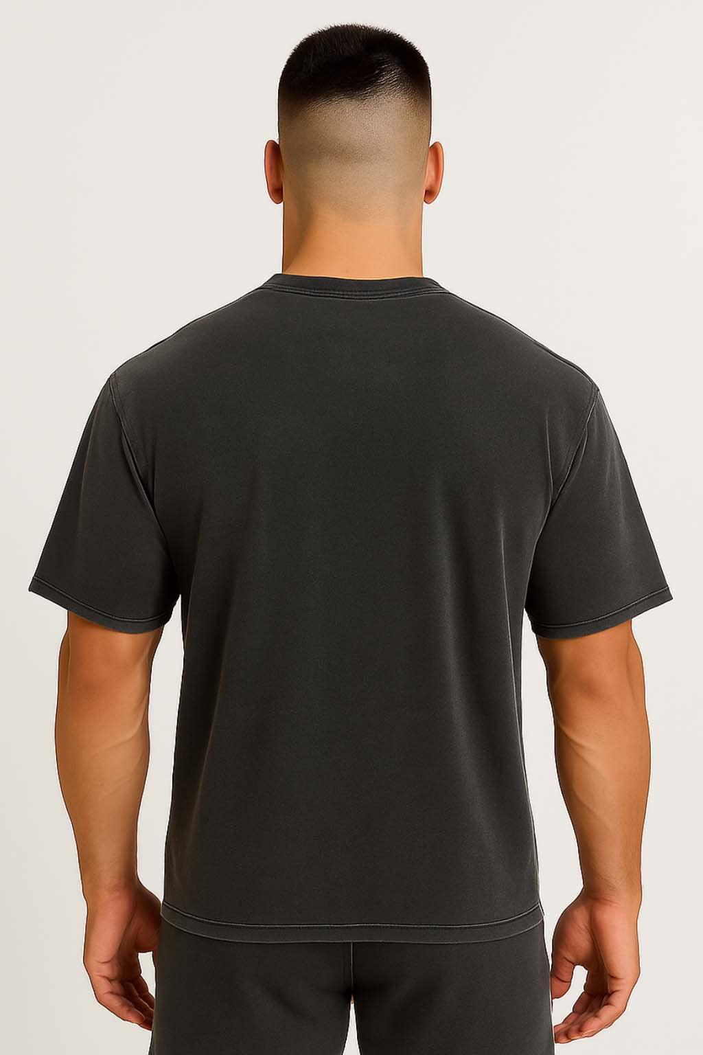 Der Stoff ist schwerer und robust, mit individuellem grey-washed Finish, das jedes Shirt zum Unikat macht. Der klassische College-Rundhals‑Schnitt mit markantem Band an Kragen und Ärmeln sorgt für Streetwear‑Vibe, ohne auf Funktion im Gym zu verzichten.