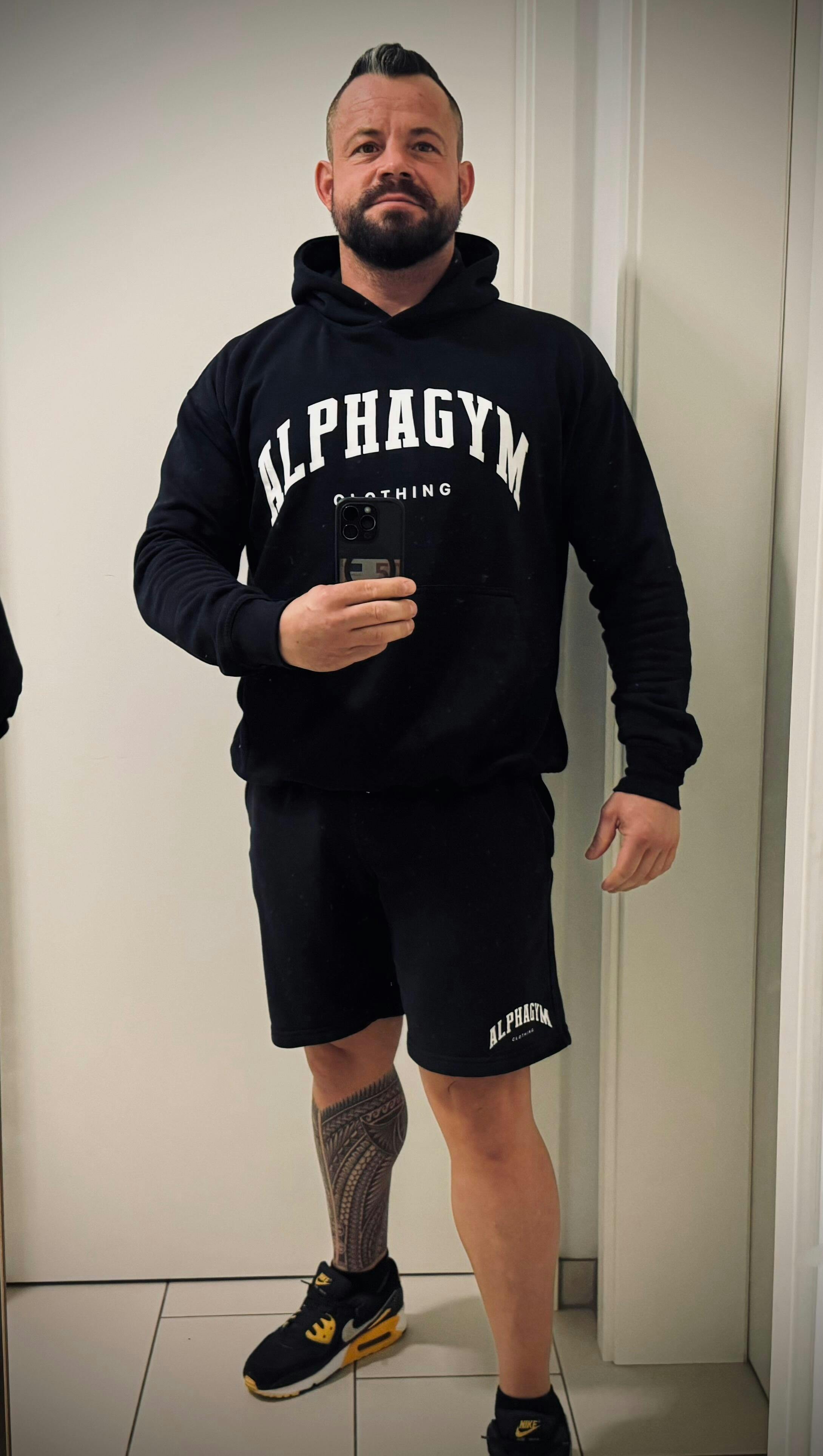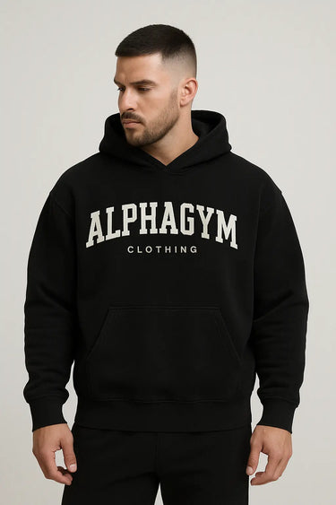 ALPHA GYM "COLLEGE" OVERSIZED FITNESS HOODIE BLACK