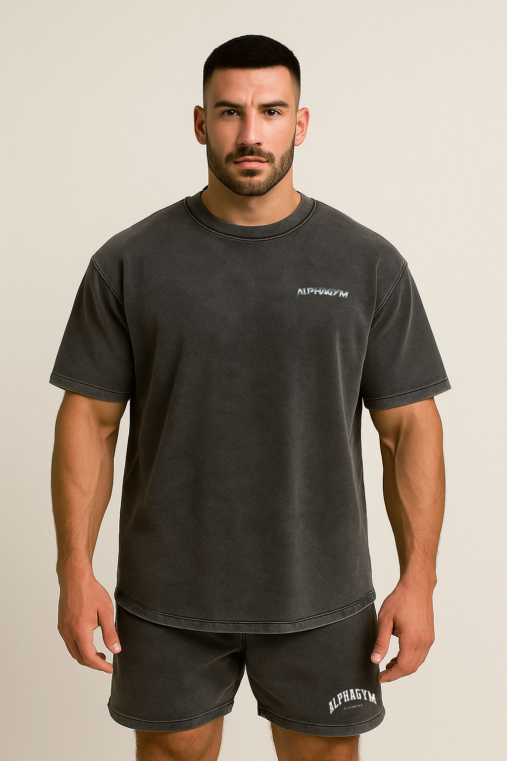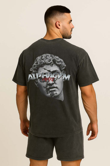 ALPHA GYM "INVICTUS" OVERSIZED FITNESS T-SHIRT GREY WASHED