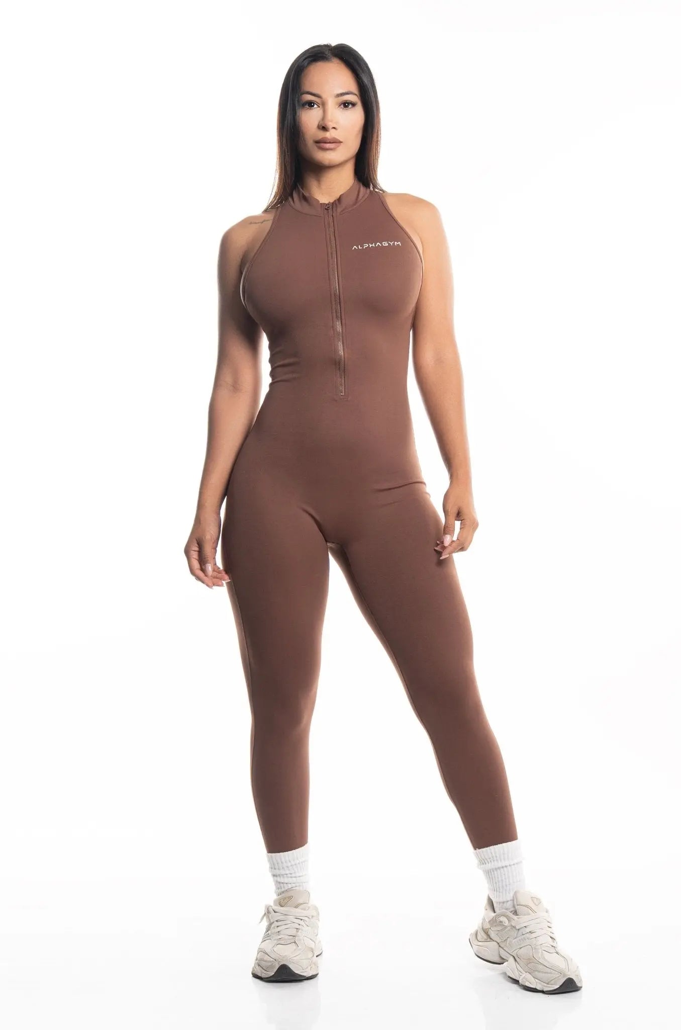 Warm, elegant und voller Tiefe – der AUREA Long Jumpsuit in Mahogany bringt Klasse und Kraft in dein Training. Für selbstbewusste Frauen mit Stil.
