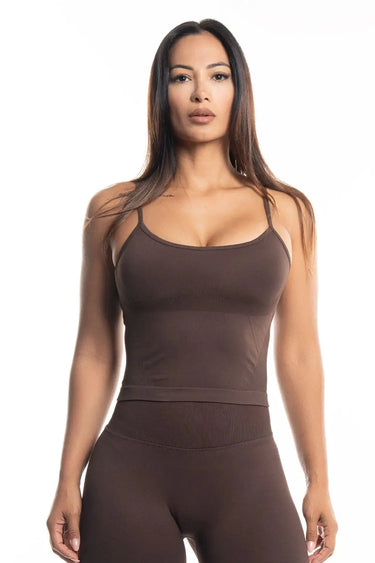 Das AYLA Top in Mocha ist mehr als ein klassischer Sportbra – es kombiniert den Halt eines Bras mit dem Komfort und der Eleganz eines Tops.